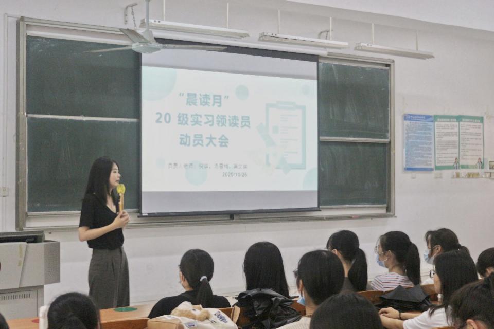 为提升我校大学英语教学中心(以下简称“大英中心”)2020年“晨读月”活动效果,10月26日下午,20级实习领读员动员大会于7教201室举行,旨在向实习领读员介绍相关活动安排及领读员职责。大英中心教师倪琪、汤雪梅、龚文琪以及全体20级实习领读员到场参加。会议由倪琪老师主持召开。