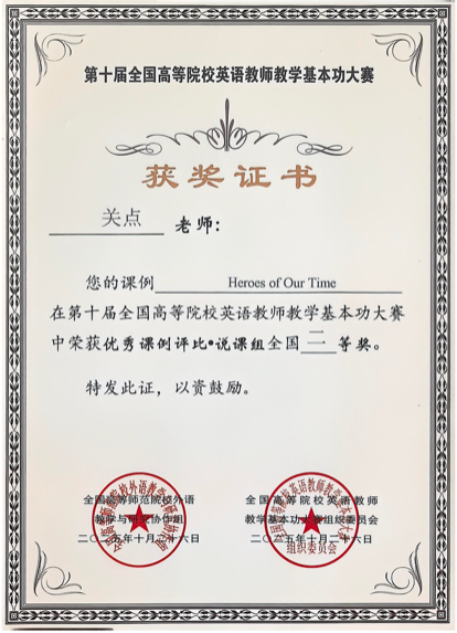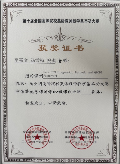 近日,第十届全国高等院校英语教师教学基本功大赛全国复评在江苏南京圆满结束。广州南方学院大学英语教学中心教师再创佳绩,共斩获三项国家级奖项。其中,巫嘉文老师的实录课荣获全国一等奖,关点老师的说课荣获全国二等奖,巫嘉文、汤雪梅和倪琪老师的微课作品荣获全国一等奖。