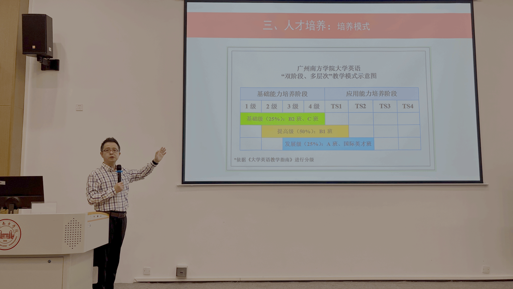 胡文育副主任介绍了一段时间以来大学英语教学中心迎评估工作中所完成的课程建设具体内容,分析了学校对公共课的具体课程建设要求,解读了学校对智慧课程建设相关政策和发展趋势,介绍了大学英语教学中心在智慧课程建设领域所取得的进展、阶段性成果等情况。