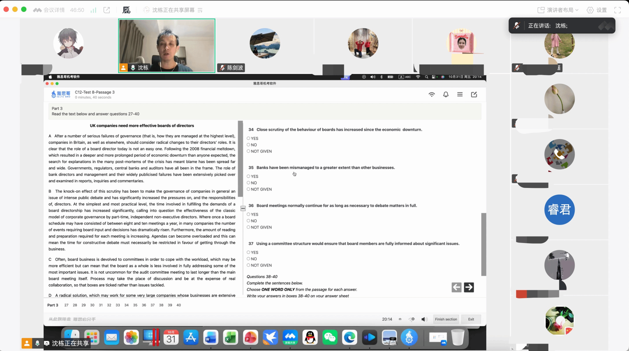 沈栋副教授结合自己参加雅思英语考试、指导学生备考的经历,详细介绍了雅思英语考试的时间安排、纸笔考试异同、试卷的题型构成、各考试模块的做题方法及各考试模块的教学经验和技巧等。