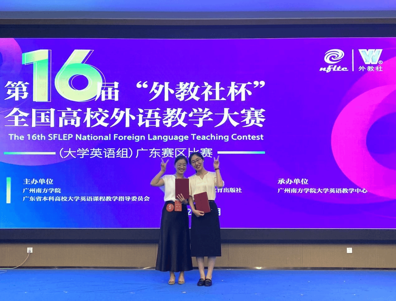经过选手说课、评审提问两大环节,综合课组与视听说课组各决出1名特等奖得主,分别是广州大学杨之淼老师和广东外语外贸大学朱晓真老师,他们将代表广东赛区出征全国总决赛,与全国顶尖教师同台竞技。值得一提的是,我校王金妮老师在视听说课组中以出色的课堂互动设计与思政元素融合能力斩获一等奖,宋微微老师在综合课组决赛中凭借扎实的教学设计功底荣获二等奖。十多年来,我校已先后派出11位老师参加了此项赛事,并取得了全部进入全省前十名决赛的优异成绩,充分展现了我校大学英语教师卓越的教学能力与专业素养。