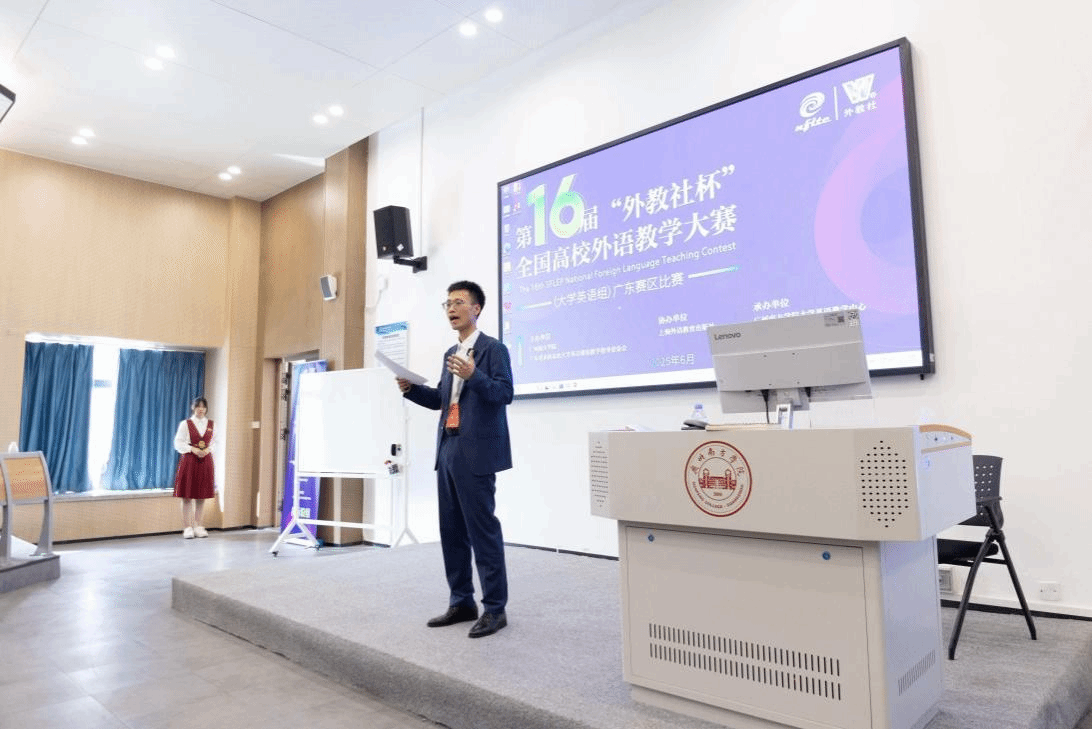 2025年6月7日,第十六届“外教社杯”全国高校外语教学大赛广东赛区决赛在广州南方学院落下帷幕。本此决赛由广东省本科高校大学英语课程教学指导委员会与广州南方学院联合主办,上海外语教育出版社协办,广州南方学院大学英语教学中心承办,吸引了全省高校与英语教育行业的高度关注。大赛以“思政教育与英语教学深度融合、信息技术与课程方案有机结合、中国智慧与全球视野多元贯通”为核心理念,以“传播中国文化、领航教育未来”为使命,是全国最高水平的外语教学比赛之一。